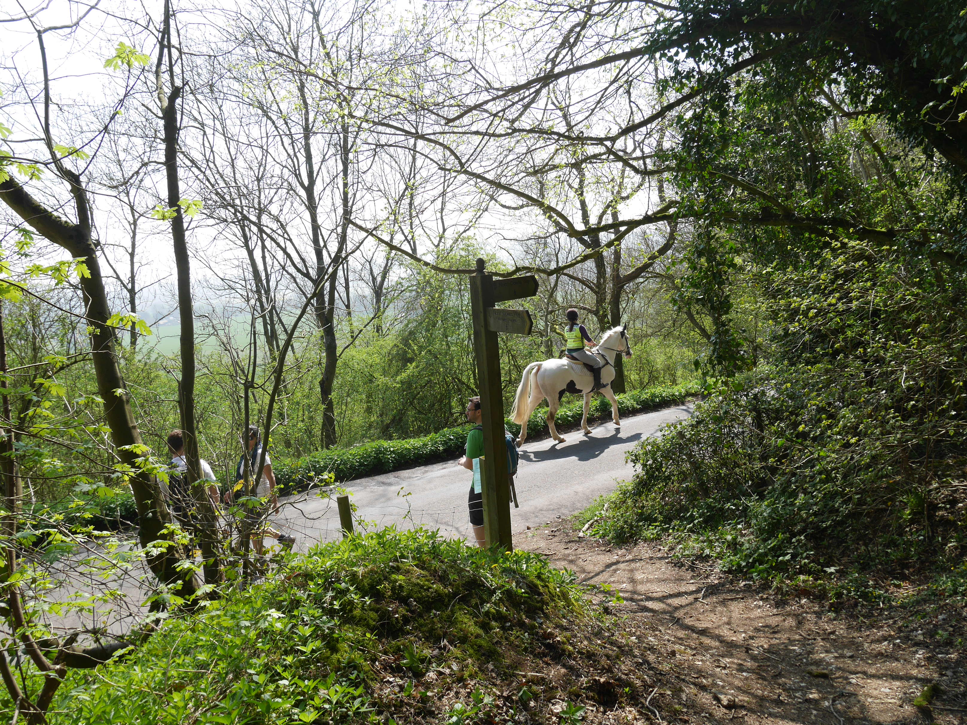 Quite soon the path turns back into more woods. I think this is called Hognore Wood. The bluebells were beautiful bathed in dappled light. The route takes you up to the A227 (and past a very dirty road sign to Wrotham and Gravesend!) Turn right down a quiet road that leads to Trosley Country Park.