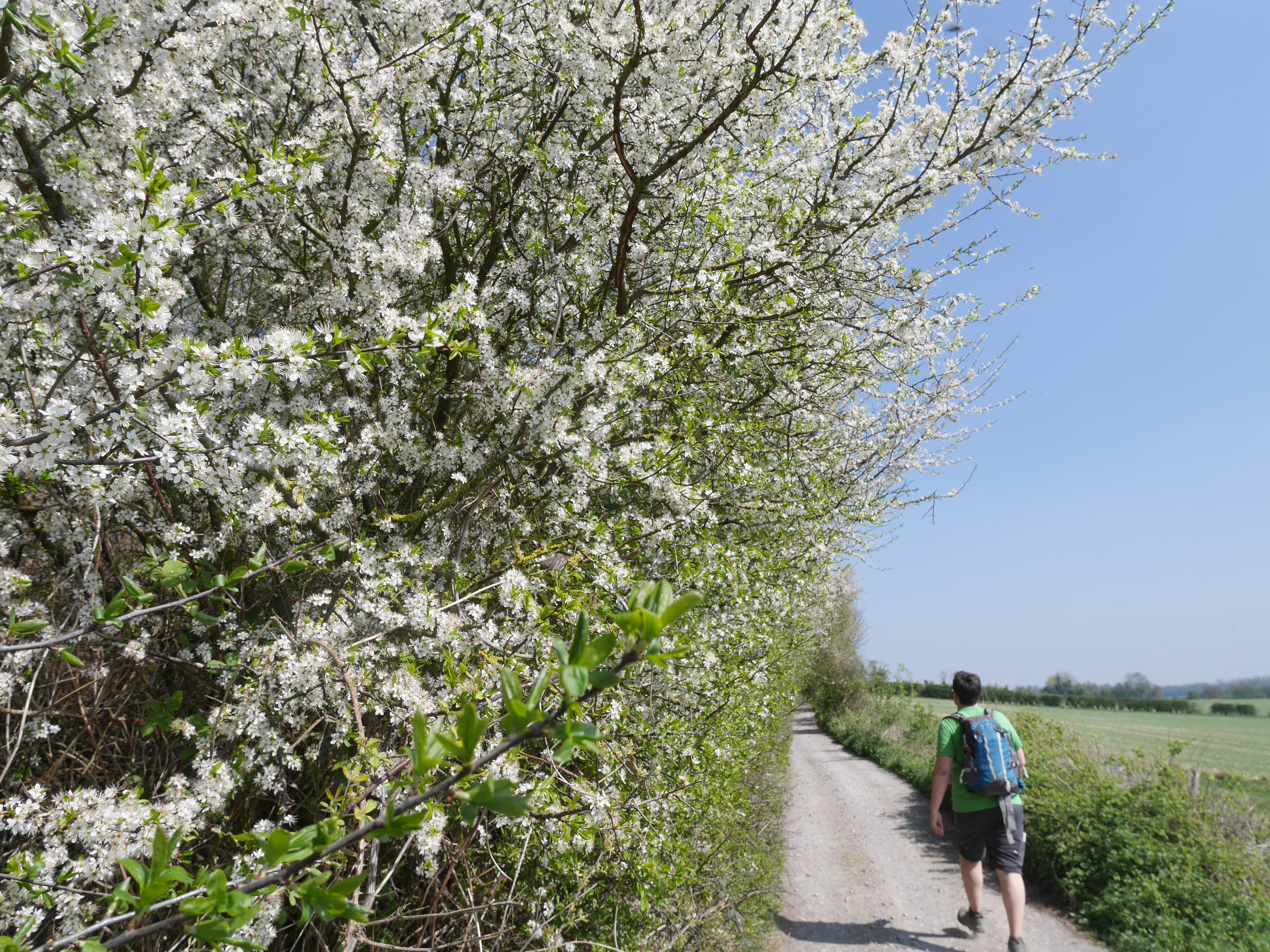 You do need to be careful near these roads. There is a bridge over the M20, but the cars heading over the roundabout don’t seem used to walkers! We had to run across the road between impatient, speedy drivers. Once we’d crossed the motorway the Pilgrims way quickly turns away from the road. It really didn’t take too long for the car noise to calm down and for it to feel like we were in the countryside again. The path is squished between two tall hedges, so the tall blokes with us had to duck between branches. If you don’t want to squeeze, the quiet road next to the path goes the same way!